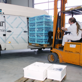 Crushed Eis und Eiswürfel in Thermo-Frischeboxen für Bar und Buffet.