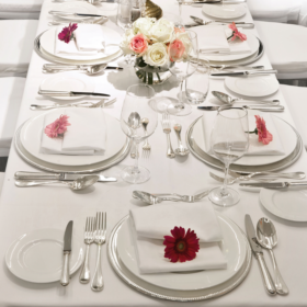 Gläser, Porzellan, Besteck sowie komplette Gedecke und alles für Fingerfood oder Flying Buffet.