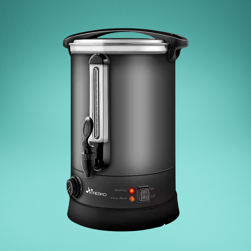 Glühweinkocher mit Zapfhahn, 20 l, Edelstahl, grau, Nutzung auch als Kaffeetherme, Heißwasserspender oder Wasserkocher